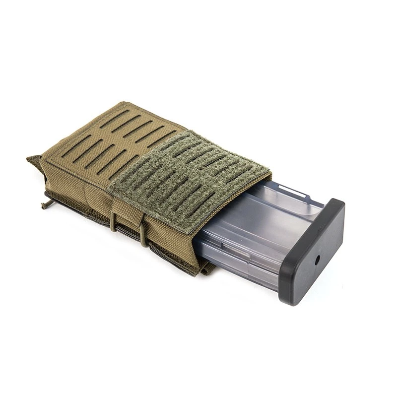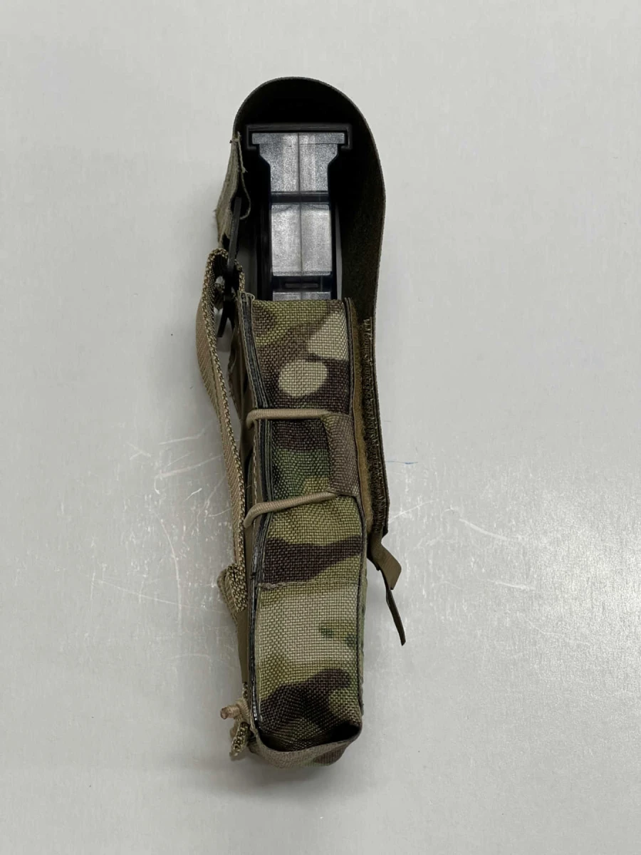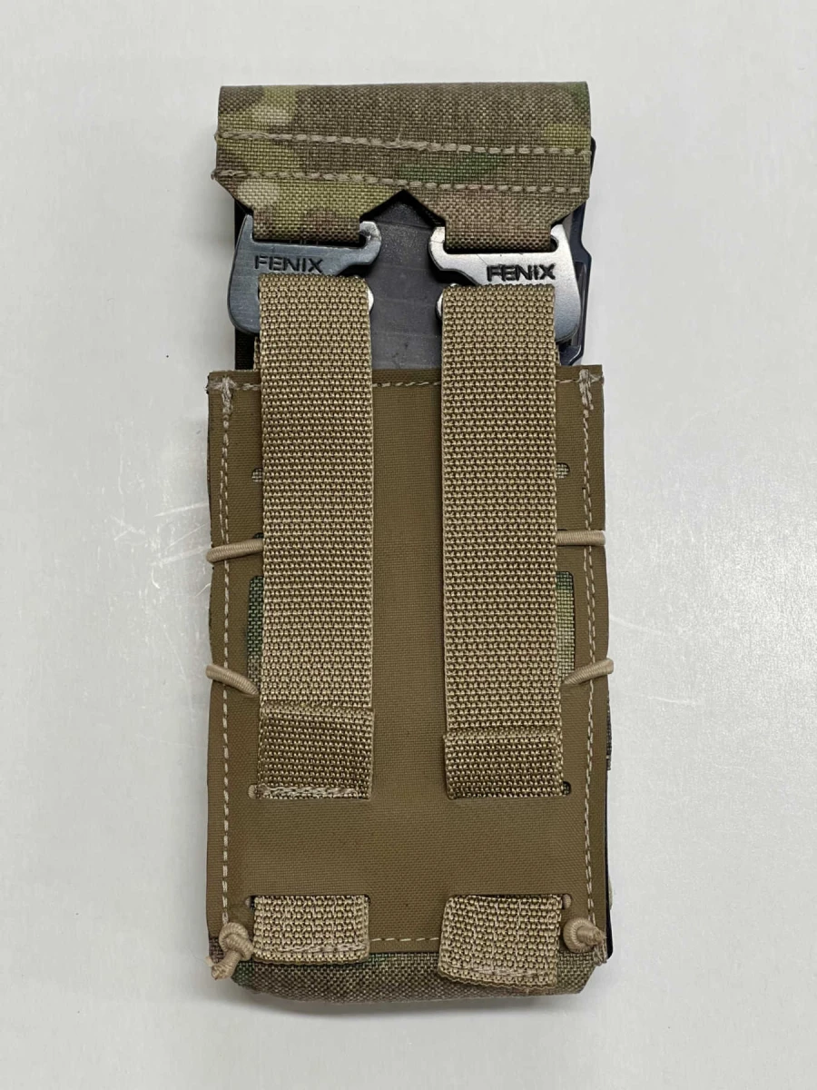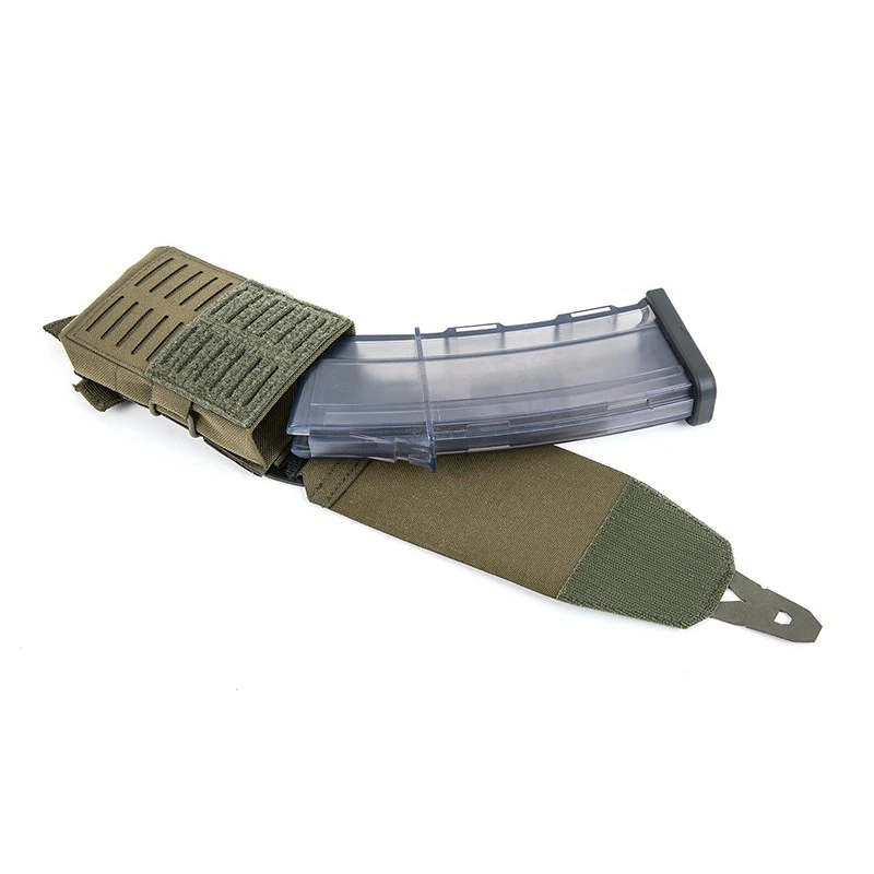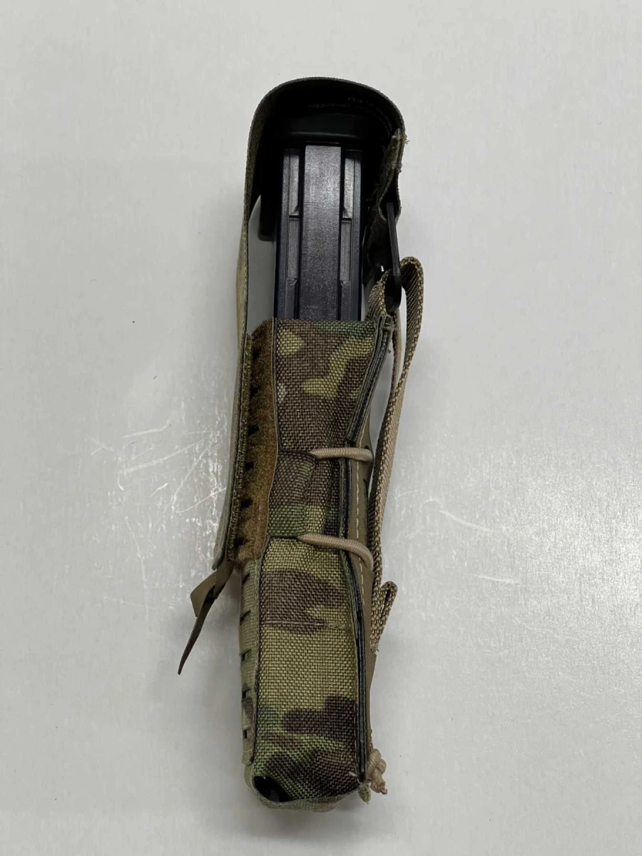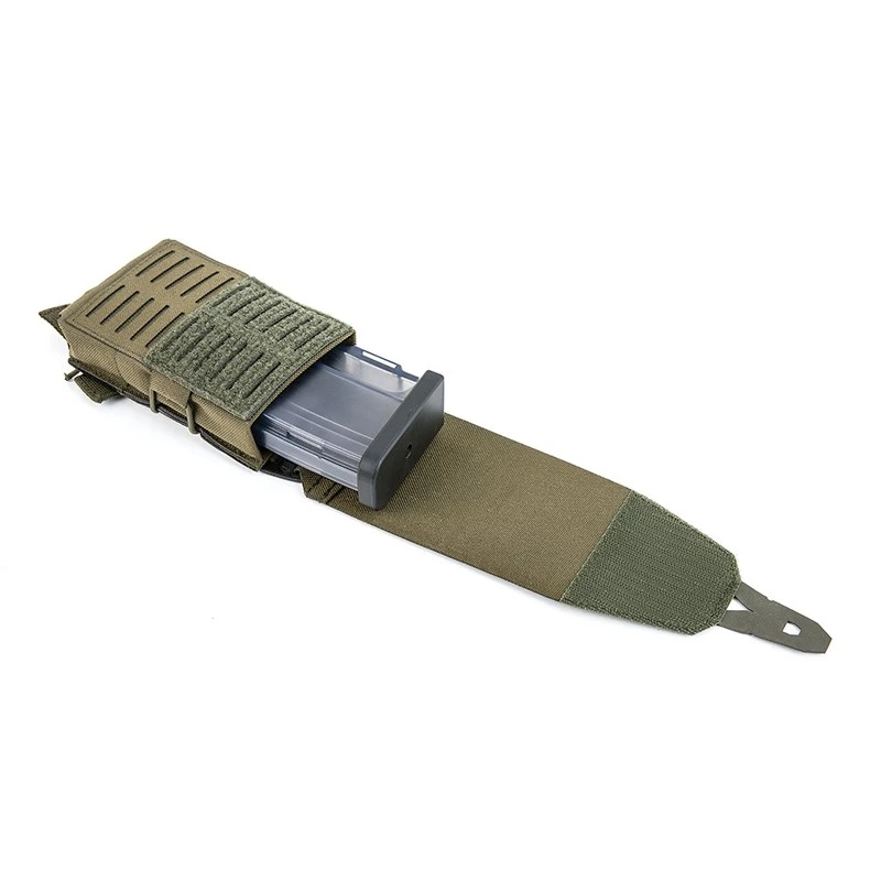 - Adjustable retention is achieved by strong shock cord creating front to back pressure. This secures the magazine in place and maintains ultra low profile.