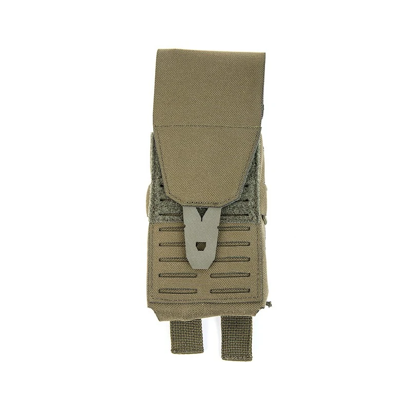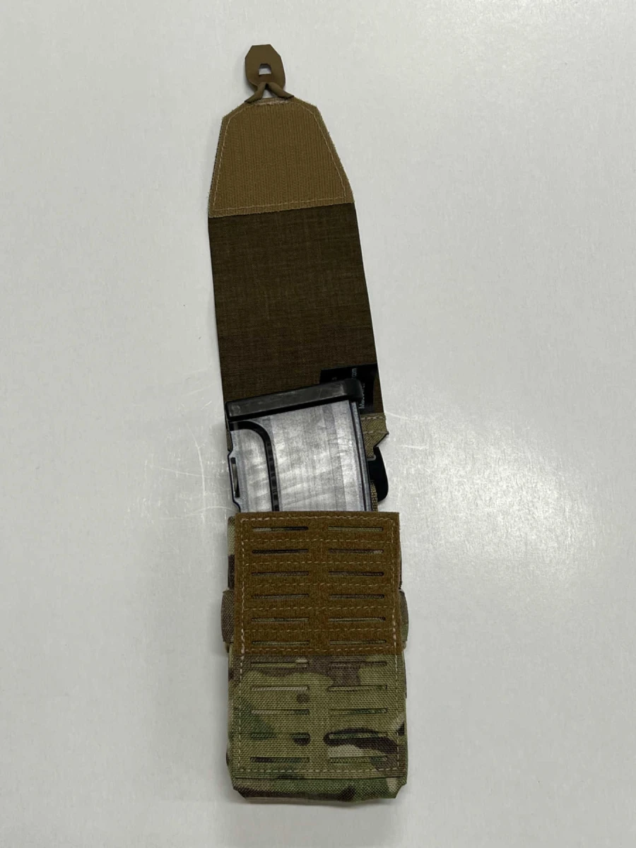 - Removable flap with Velcro is attached to the pouch by Kydex hooks.