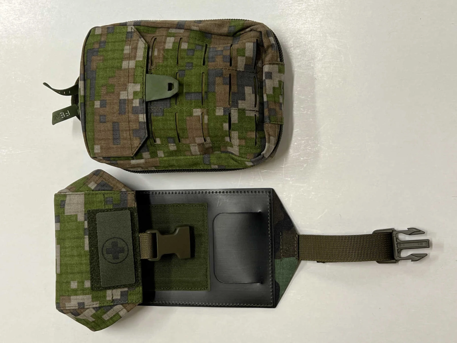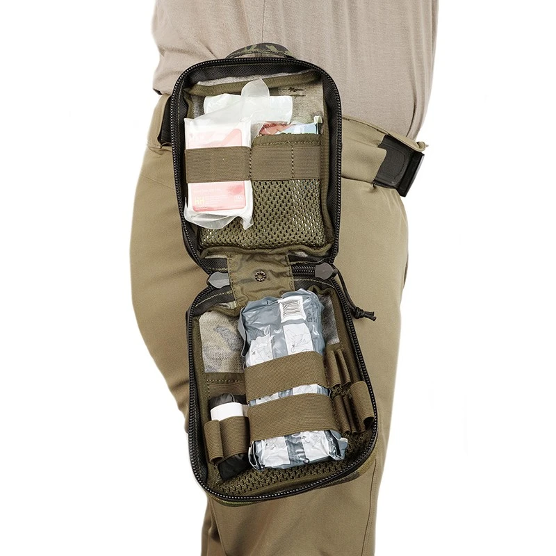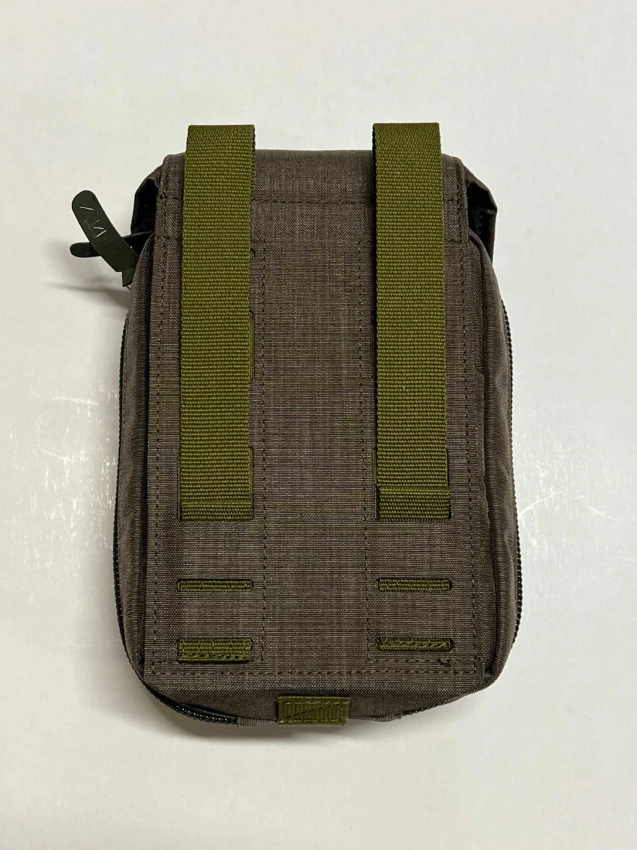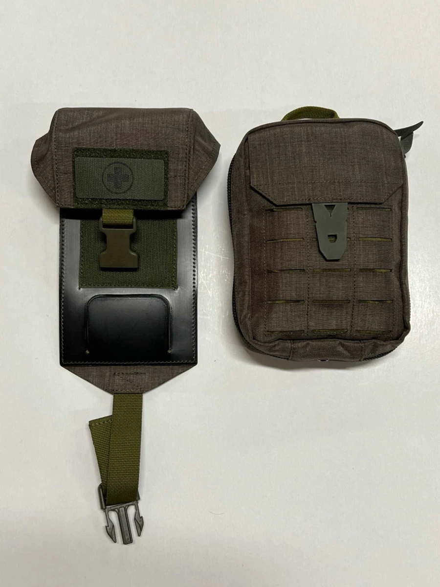- 2 části – platforma na uchycení na vazbu a vlastní lékárnička, kterou je možno lehce vyjmout a hodit spolubojovníkovi